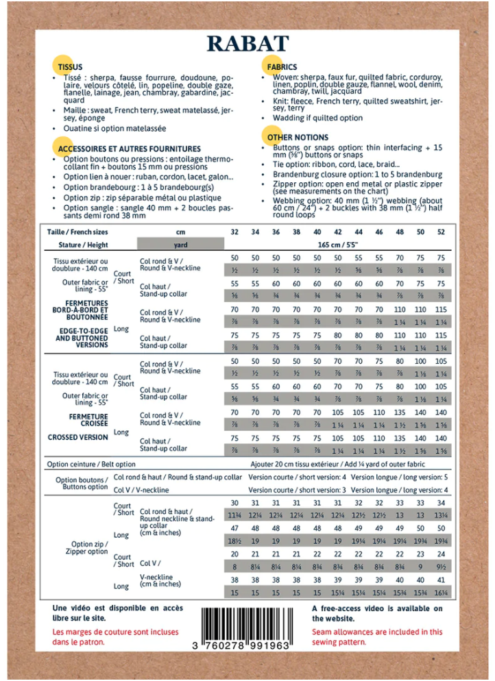 What you will learn with this sewing pattern:Â how to line a garment, sew pockets in a cut-out, assemble a belt and loops.